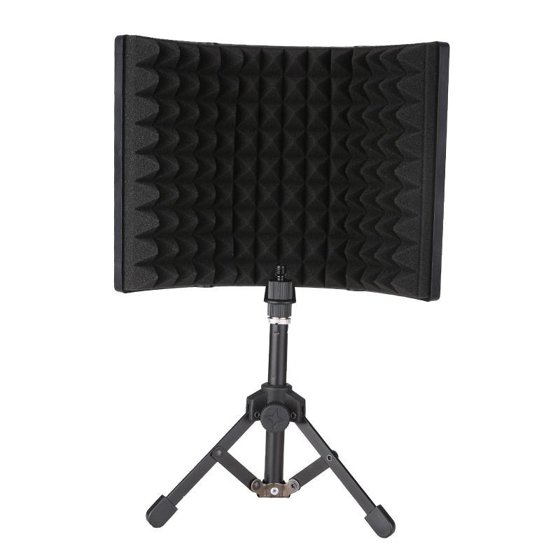 녹음을 위해 조정 가능한 스탠드가 있는 녹음 마이크 격리, 13.5x11x20.5cm, 검은 색, EVA 폼 및 스틸