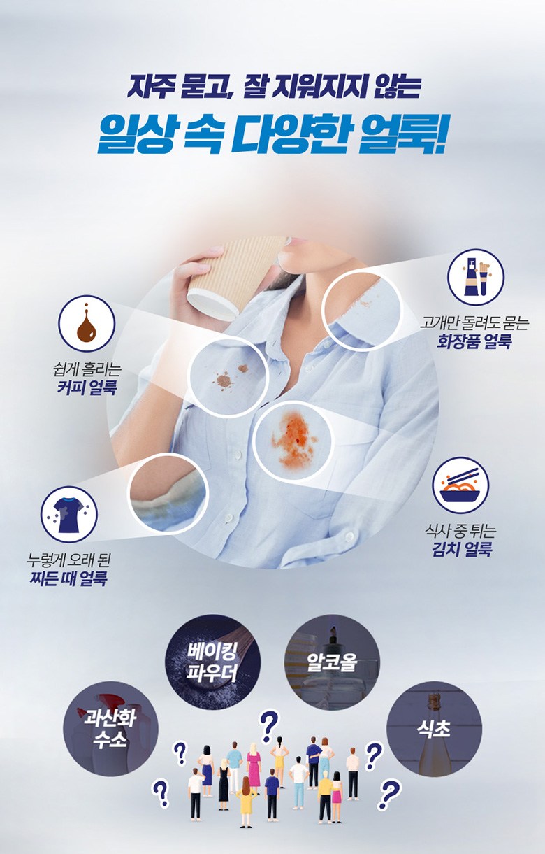 제품에 사용된 화학물질 명칭(주요물질, 보존제 등 관련 고시에 따른 표시의무 화학물질에 한함) 계면활성제 13% 이상 30%미만 [고급 알코올계 (비이온)], 직쇄 알킬 벤젠계 (음이온), 고급 알코올계 (음이온) 가공 보조제, 향료, 효소 안정화제, 색소, 방오 가공제, 킬레이드, 효소, 보존제(벤즈이소차아줄리논 0.015%), 산도조절제(최종, 산용 소금), 벤질살리실레이드(향료), 헥실신남알(향료),리모넨 (향료, 0.0072%)