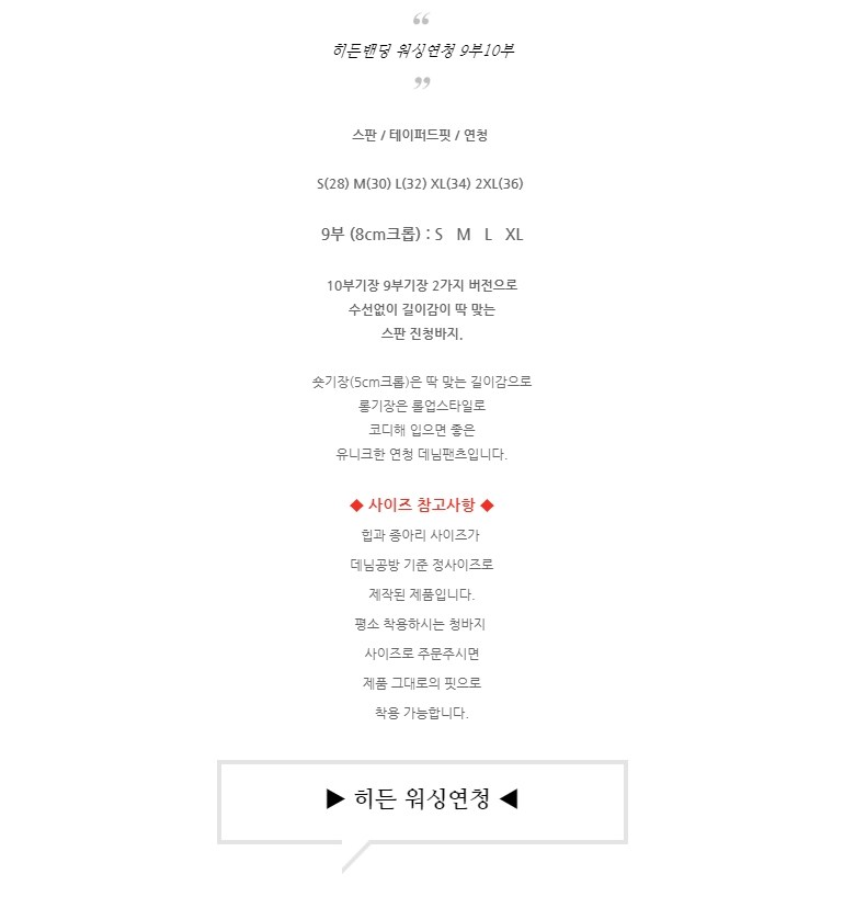 | 치수 | S(28),M(30),L(32),XL(34),2XL(36) |