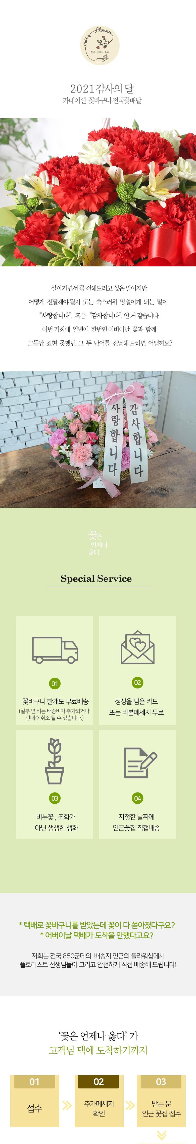 | 제조자(수입자) | 데일리플라워 / 5월8일건 지방 면*리단위(배송지에서10km이상)은 배송불가 /주문하셔도자동취소됩니다 |