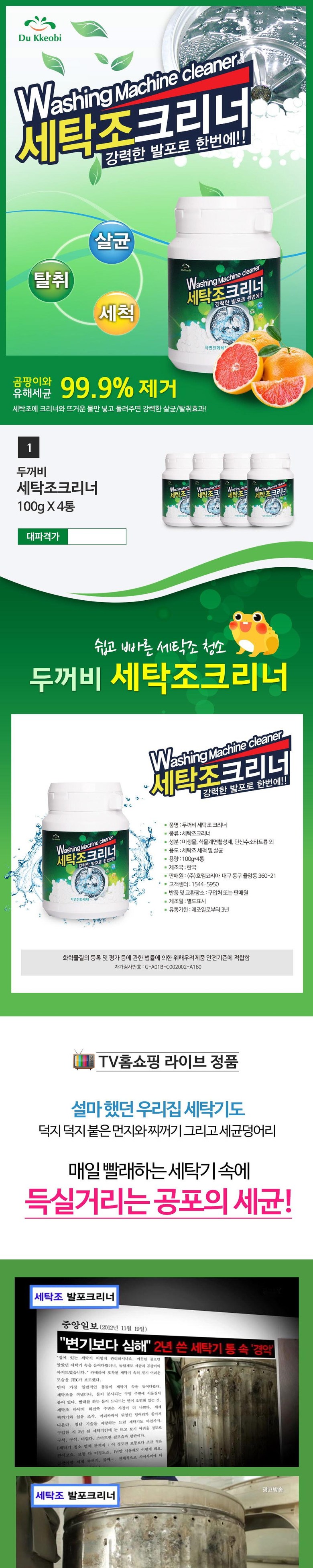 두꺼비 세탁조 클리너 세탁기 청소 세제 통돌이 드럼 통세척 발포 크리너 세정제, 100g, 4개