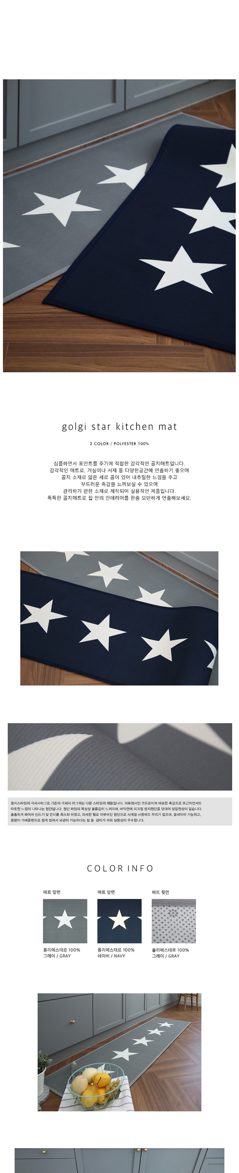 러그랜드 스타 골지 롱주방매트, 그레이