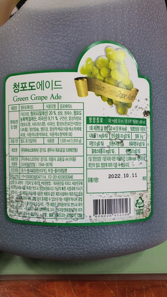 | 제품명 | 청포도에이드 |