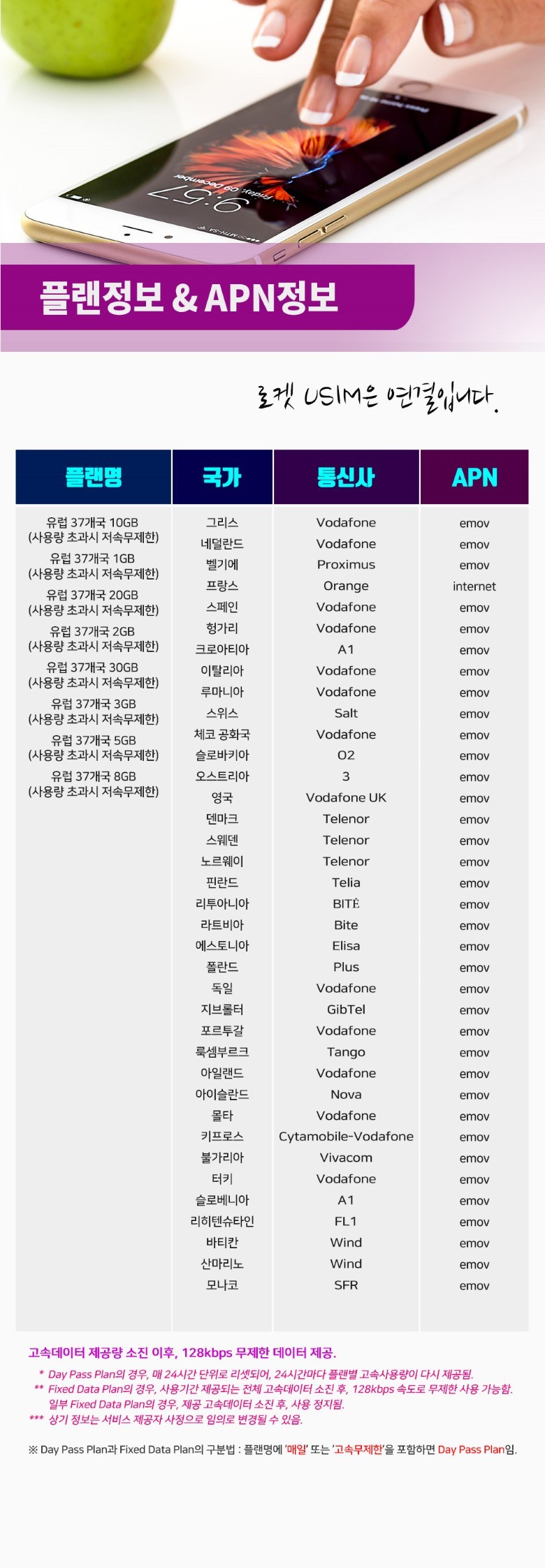 | 품명 및 모델명 | 로켓유심 유럽 37개국 플랜 |