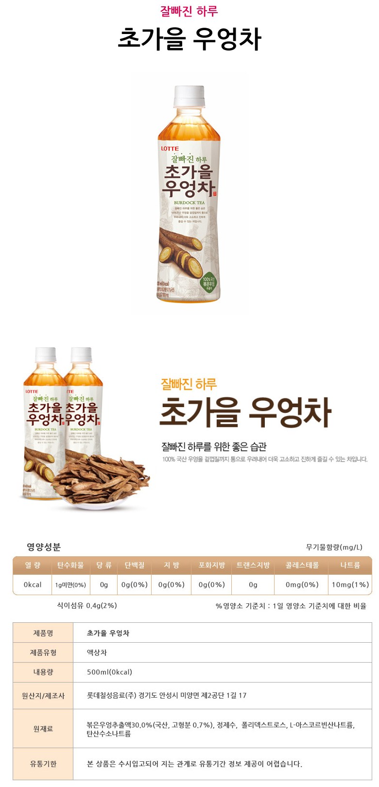 롯데 초가을 우엉차 500ML X 24병, 우엉차24개