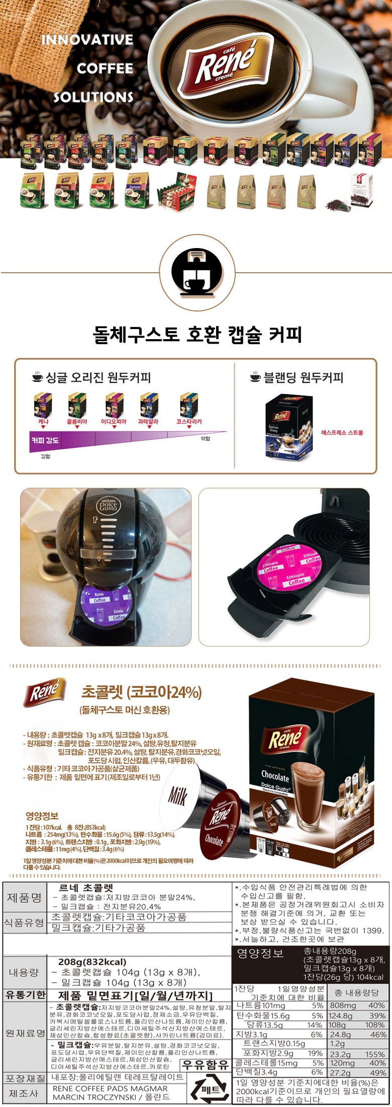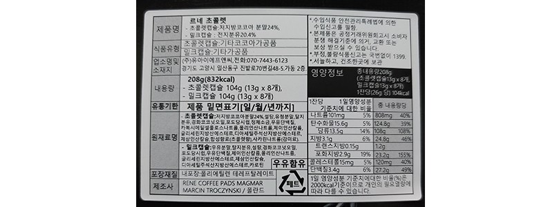 | 생산자 및 소재지 | RENE COFFEE PADS MAGMAR MARCIN / (주)유아이에프앤씨 / 폴란드 |