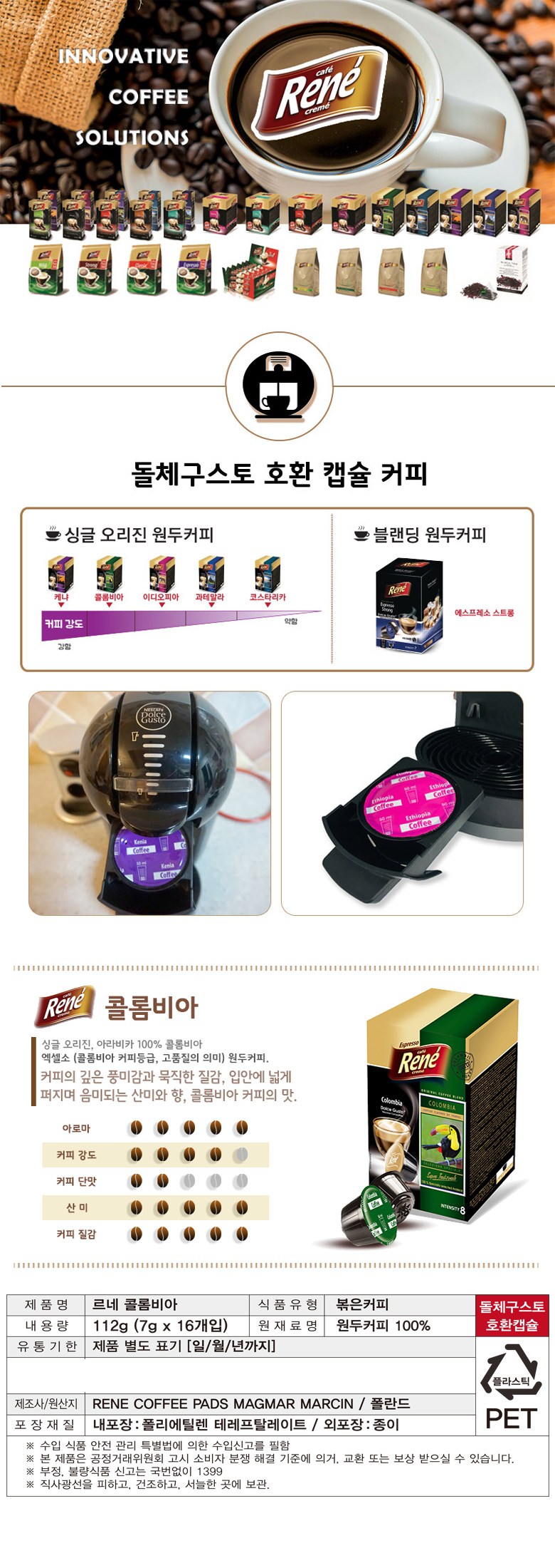 르네 돌체구스토 호환캡슐 콜롬비아 엑셀소 캡슐커피 16개입 X 1박스, 7g, 16개