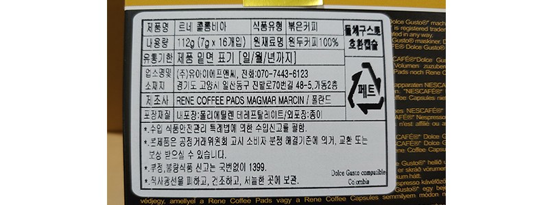 | 생산자 및 소재지 | RENE COFFEE PADS MAGMAR MARCIN / (주)유아이에프앤씨 / 폴란드 |