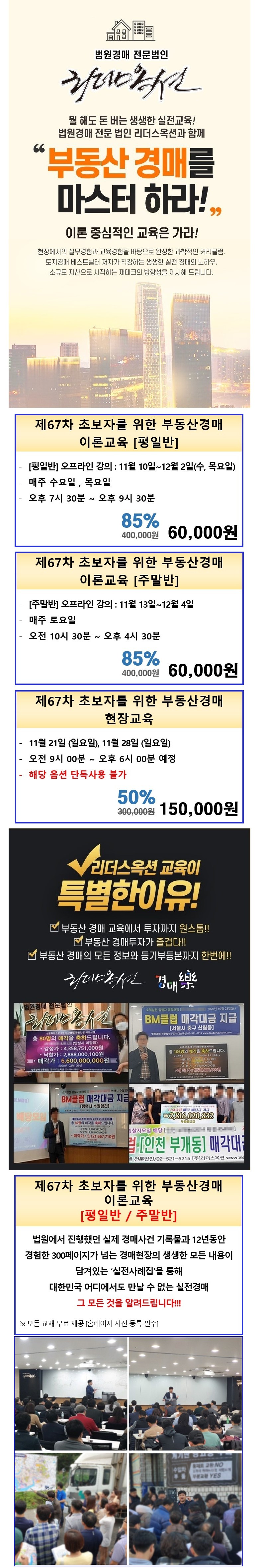 리더스옥션-경매락 2021년 초특가 제67차 초보자를 위한 부동산경매 이론교육 + 현장교육, 주말반