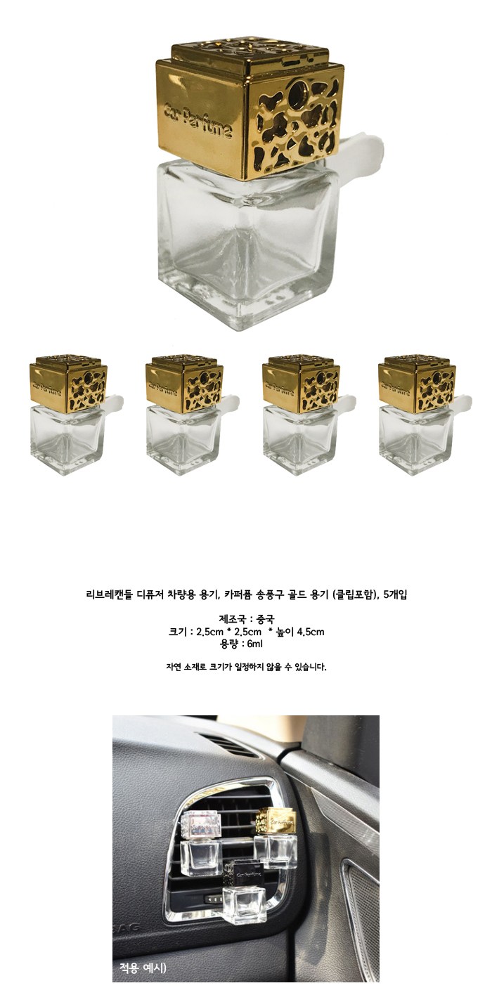 리브레캔들 디퓨저 차량용 카퍼퓸 송풍구 용기 5p + 클립 5p, 골드, 6ml