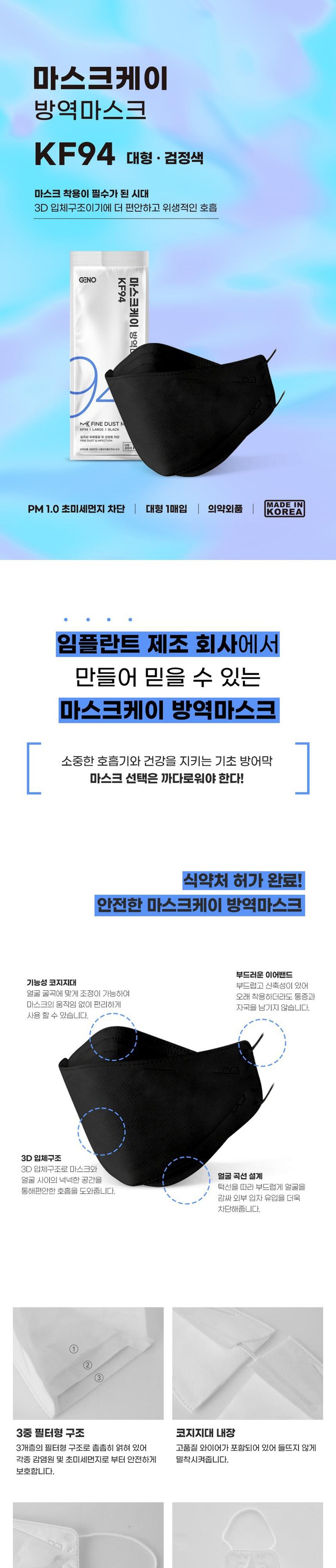 | 품명 및 모델명 | 마스크케이방역마스크(KF94)(대형)(검정색) |