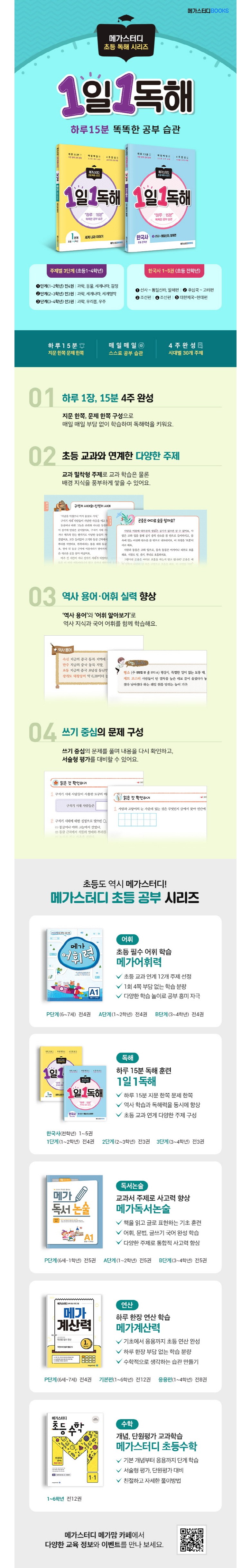 [메가스터디북스]메가스터디 초등 독해 1일 1독해 레벨 1단계 세트 – 1일 1독해 주제별 시리즈 (전4권), 메가스터디북스