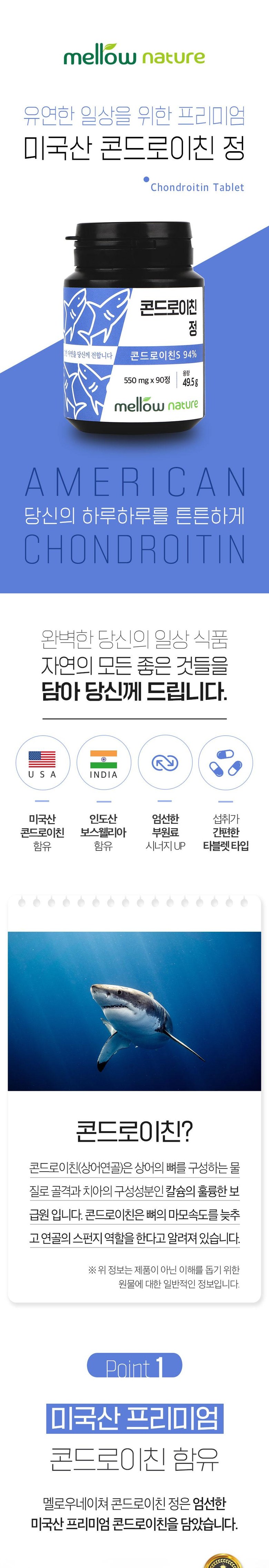 멜로우네이쳐 상어 연골 콘드로이친 정, 3개, 90정