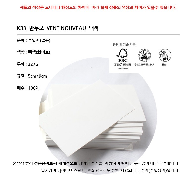 명함종이 명함규격 두꺼운종이 흰색 미색 무지종이 100장, 반누브 백색100장, 1개