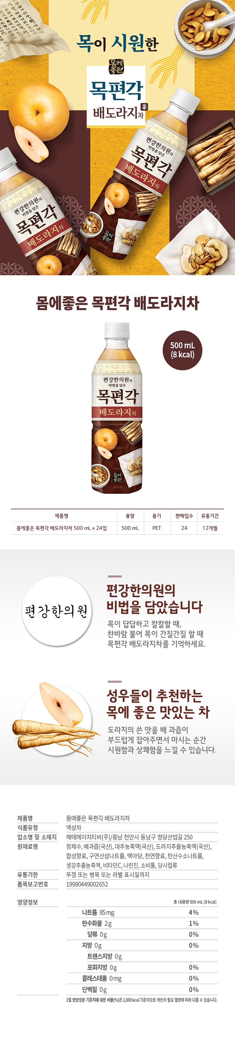 | 제품명 | 몸에좋은 목편각 배도라지차 |