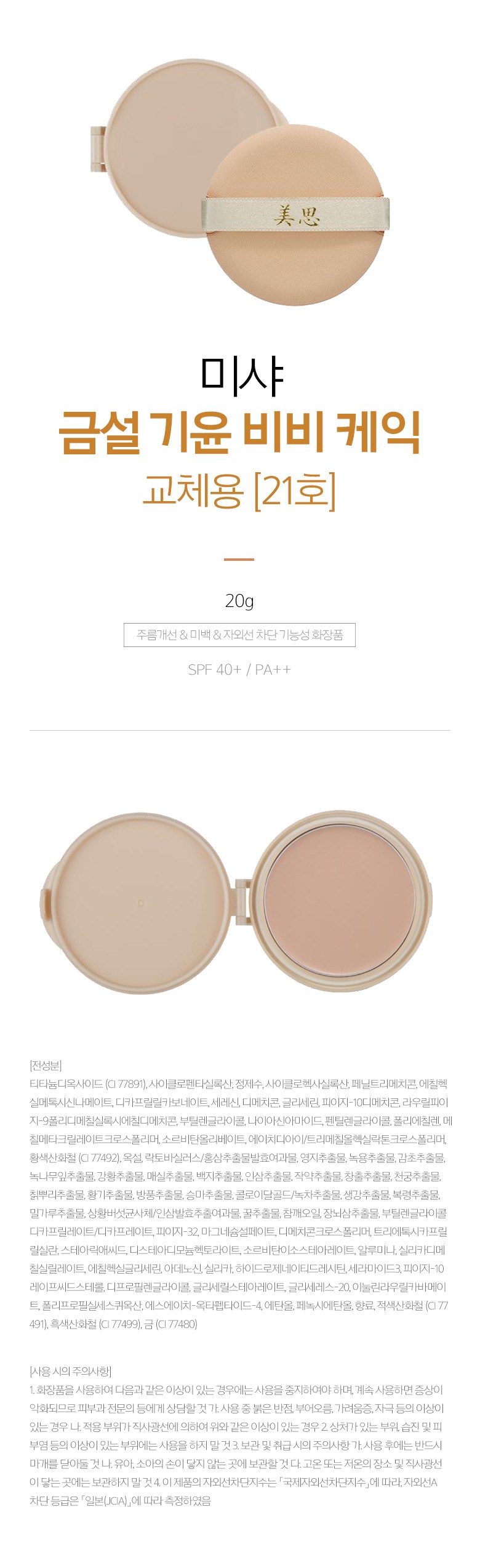 미샤 금설 기윤 비비 트윈케익 리필 20g, 21호, 1개