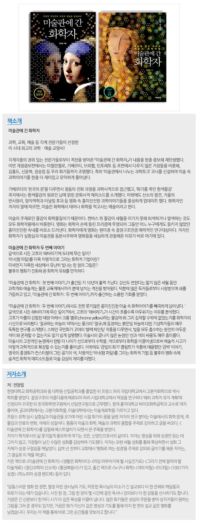 | 도서명 | 미술관에 간 화학자 + 미술관에 간 화학자 두번째 이야기(전2권) |