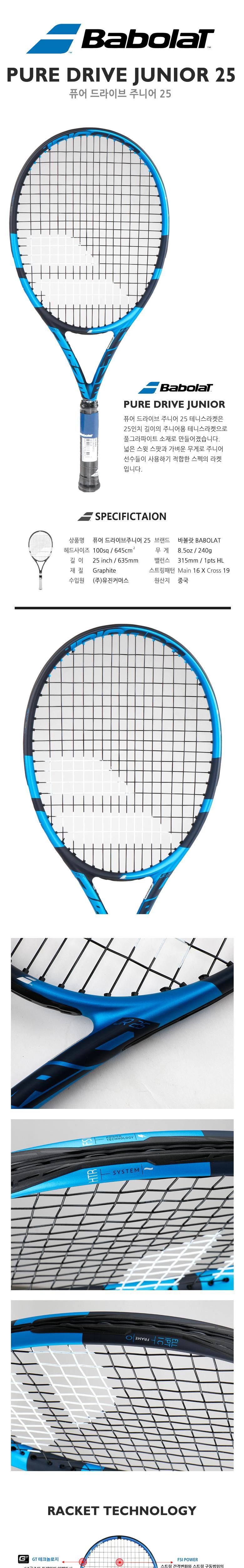 바볼랏 2021 퓨어 드라이브 25 JR 주니어 240g 테니스 라켓