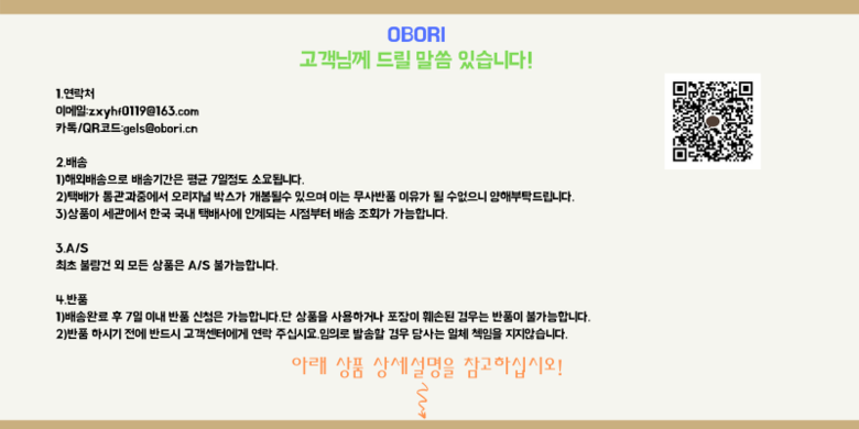| A/S 책임자와 전화번호 | 상품 상세페이지 참조 |