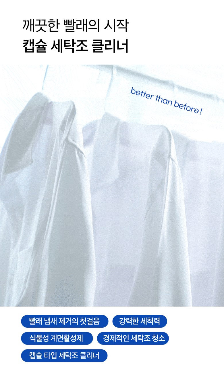 | 품명 및 모델명 | 베러댄비포 캡슐 세탁조 클리너 6캡슐, 2개, 베러댄비포 캡슐 세탁조 클리너 6캡슐 2개 |