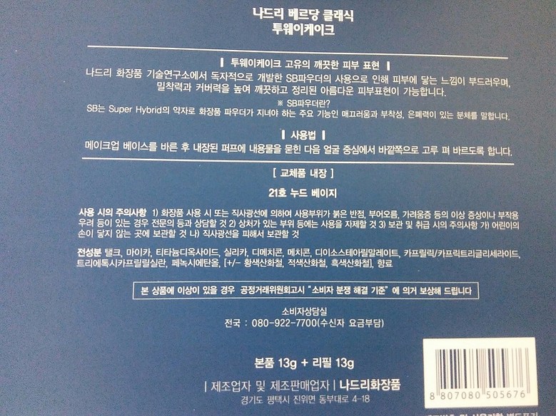 | 화장품제조업자 및 화장품책임판매업자 | 나드리화장품(주) |