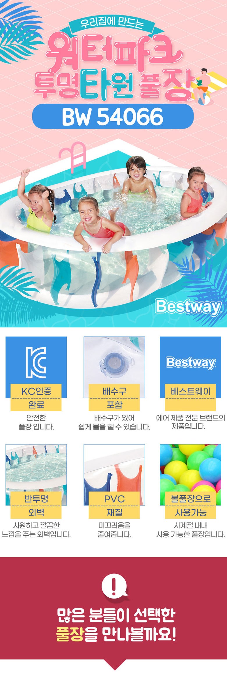 베스트웨이 투명 타원 에어 물놀이 풀장 BW54066, 혼합색상