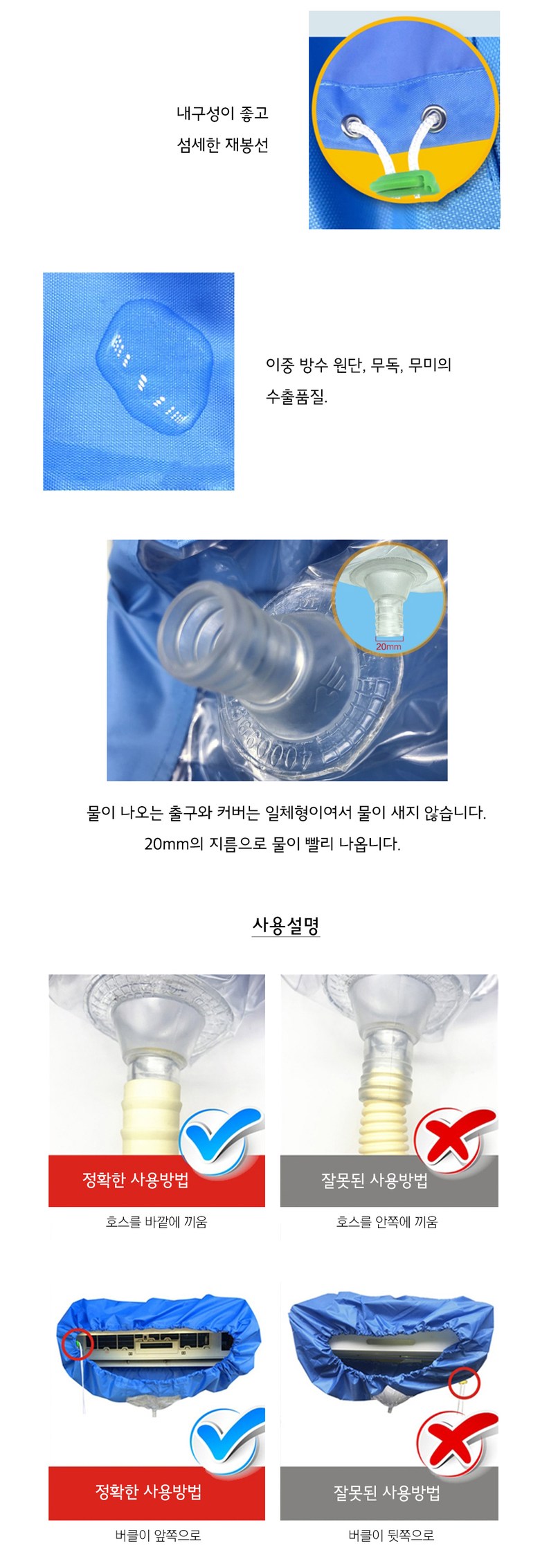 | 품명 및 모델명 | 벽걸이형 에어컨청소커버 세척커버 셀프청소 청소덮개 물받이 대형 중형 + 2.8M호스 |