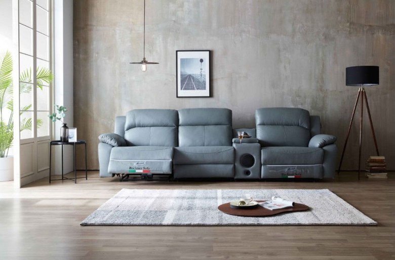 부르봉가구 올나파가죽 제로월 무선충전 블루투스 우퍼 원터치기능 3 4인용 리클라이너 소파, 진베이지컬러