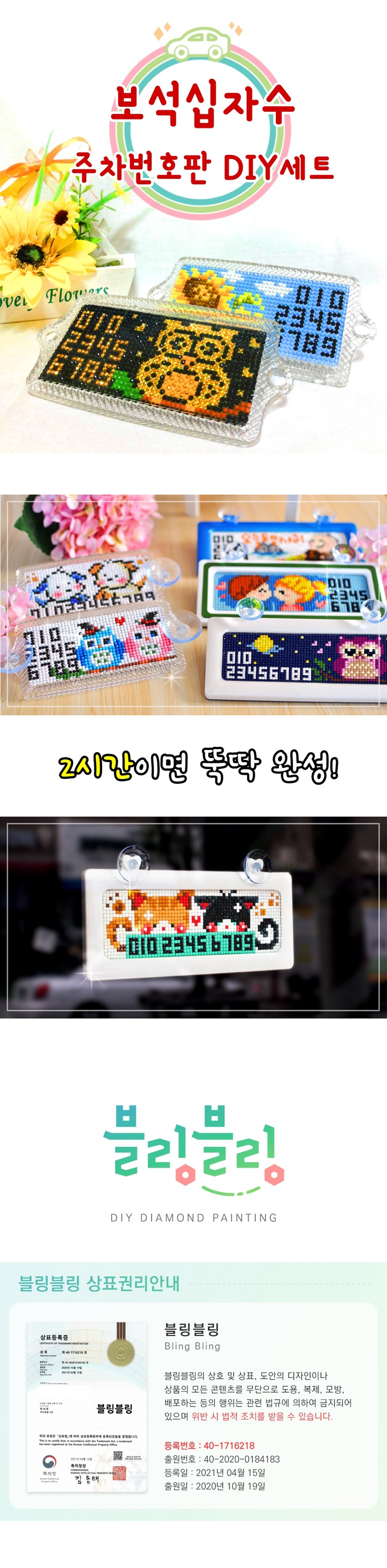 비치나몰 보석십자수 주차번호판 DIY 세트 비즈 큐빅 캐릭터, 멍이-하트번호판주차(핑크)
