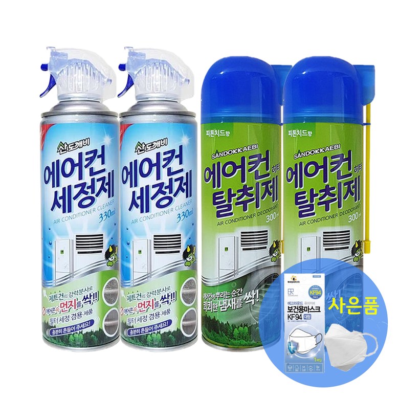 산도깨비 에어컨 청소 세정제 330ml + 탈취제 300ml (사은품증정), 세정제2개+탈취제2개