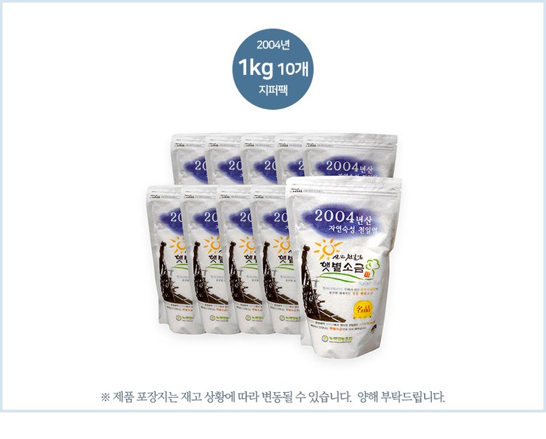 [생명의땅 전남] 숙성/선별 저염도 명품 신안천일염 2004년산 (일본지진이전 약용소금 ), 10개, 1kg