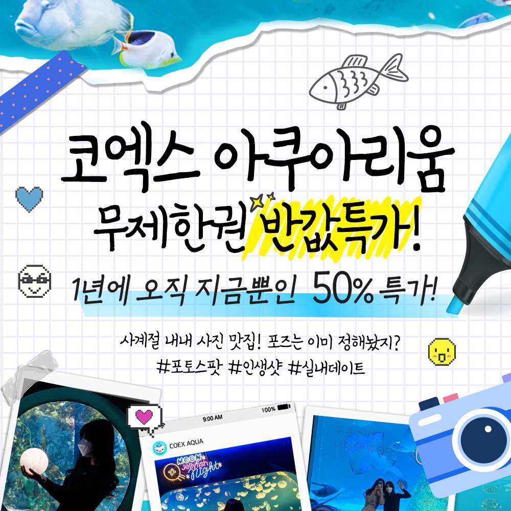 [서울/삼성] ★1년에 지금뿐! 한정상품★ 코엑스 아쿠아리움 연간 무제한 이용권