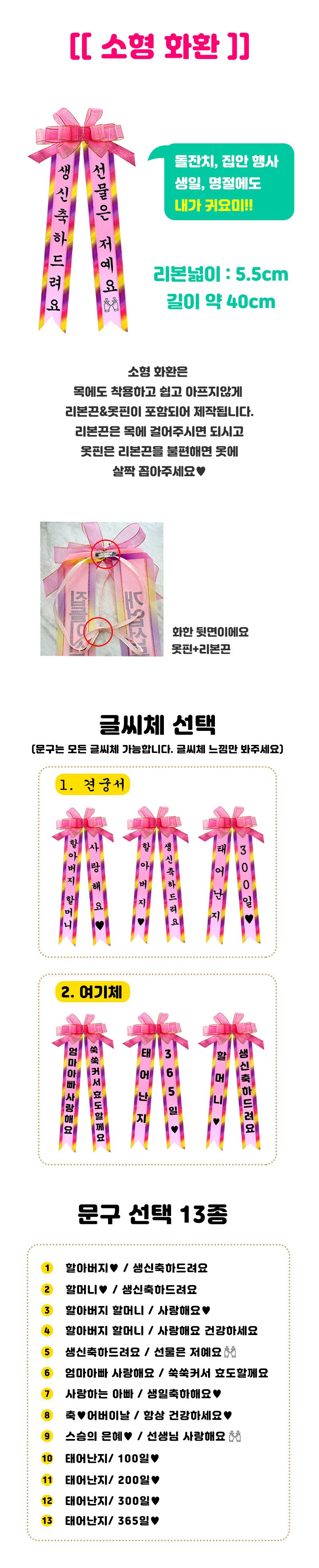 소형 화환 2p, 견궁서, 5. 생신축하드려요/선물은저예요*2