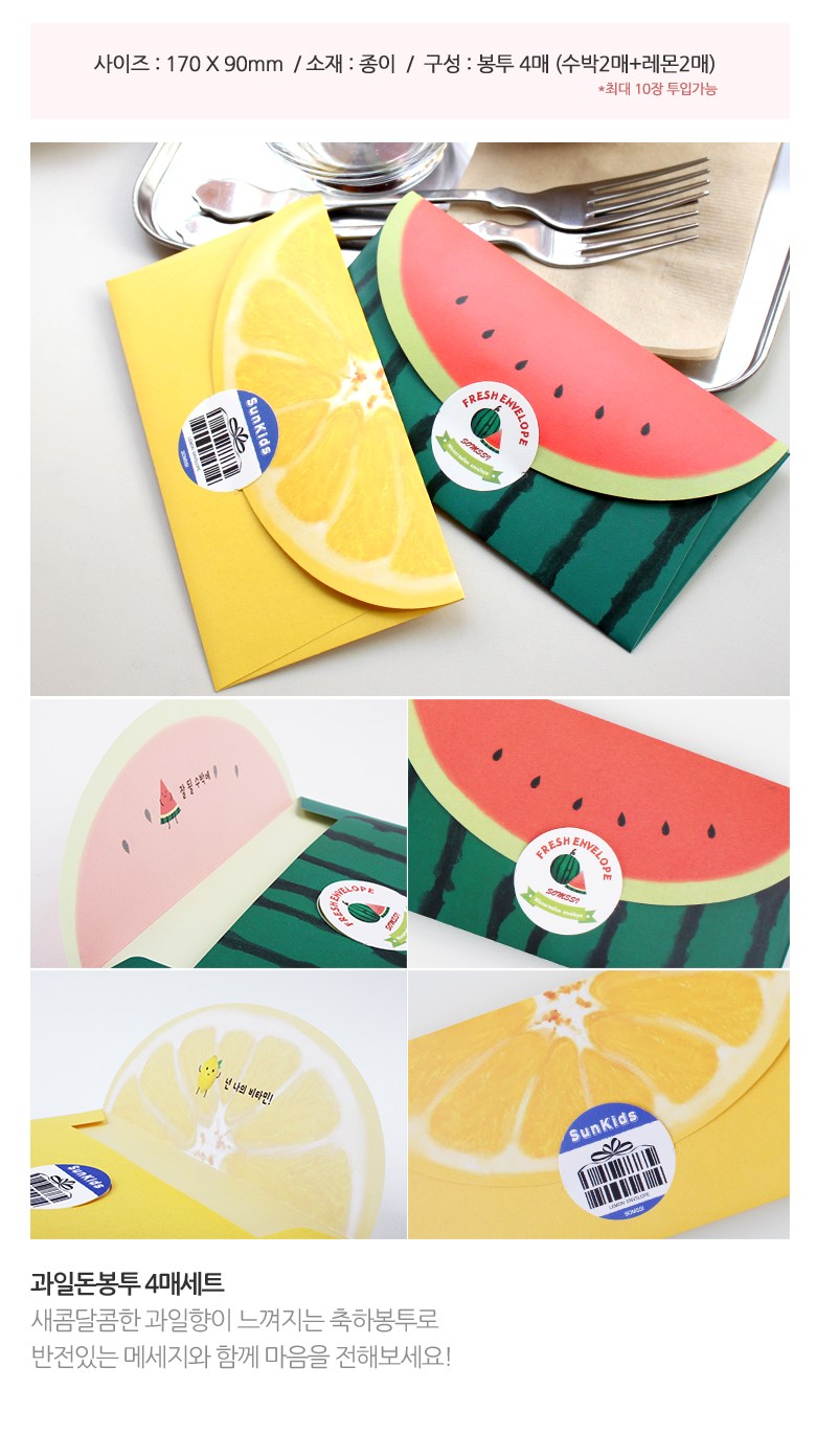 솜씨카드 과일돈봉투 수박2p + 레몬2p, 혼합 색상, 1세트