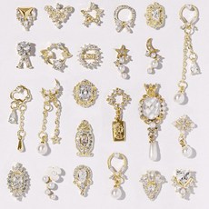 고급웨딩 골드큐빅진주 댕글파츠 네일아트재료, 1개, 1550 숏플라워펄댕글
