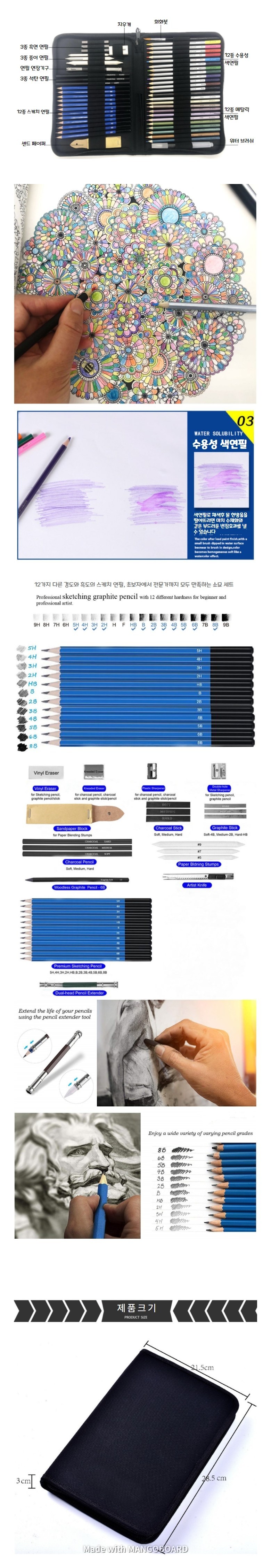 품명 및 모델명 스케치 드로잉 51종 + 스케치북 세트 8B 1세트