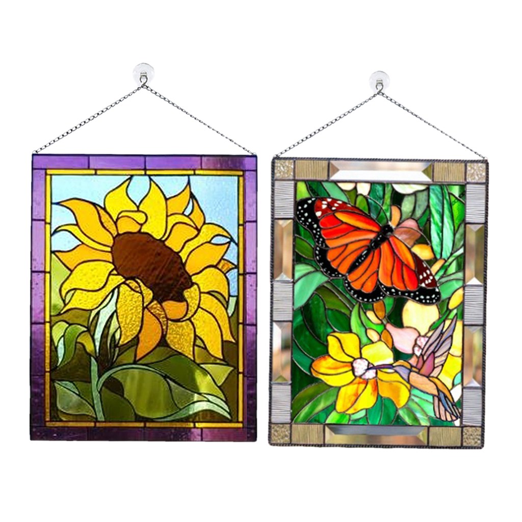 스테인드 글라스 장방형 창 패널 손으로 만든 벽 장식 펜던트, 20x15cm, 여러 가지 빛깔의, 아크릴