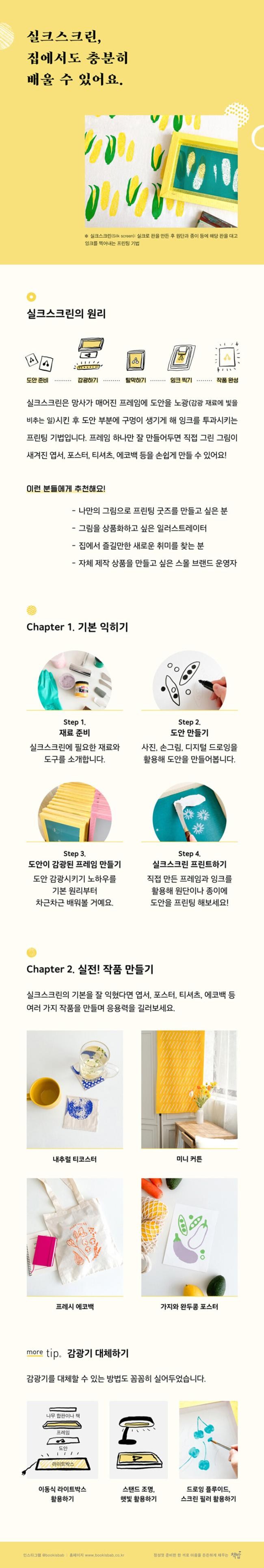 | 도서명 | [책밥]실크스크린 홈 클래스 : 집에서 차근차근 배우는 실크스크린 A to Z |