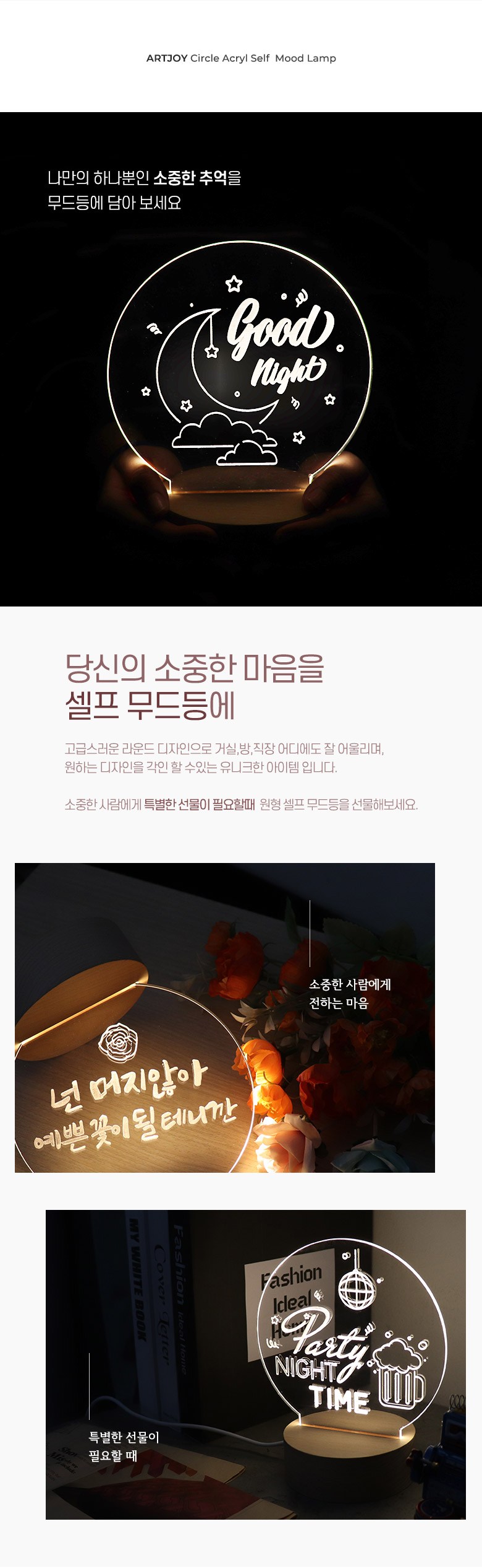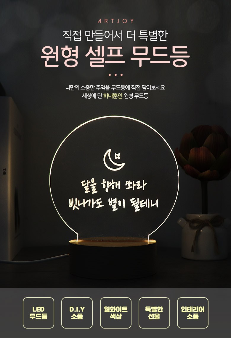 아트조이 DIY 아크릴 원형 셀프 무드등, 웜화이트