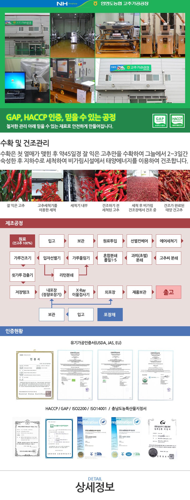 [안면도농협] 태양초 고춧가루, 유기농 1kg, 1kg