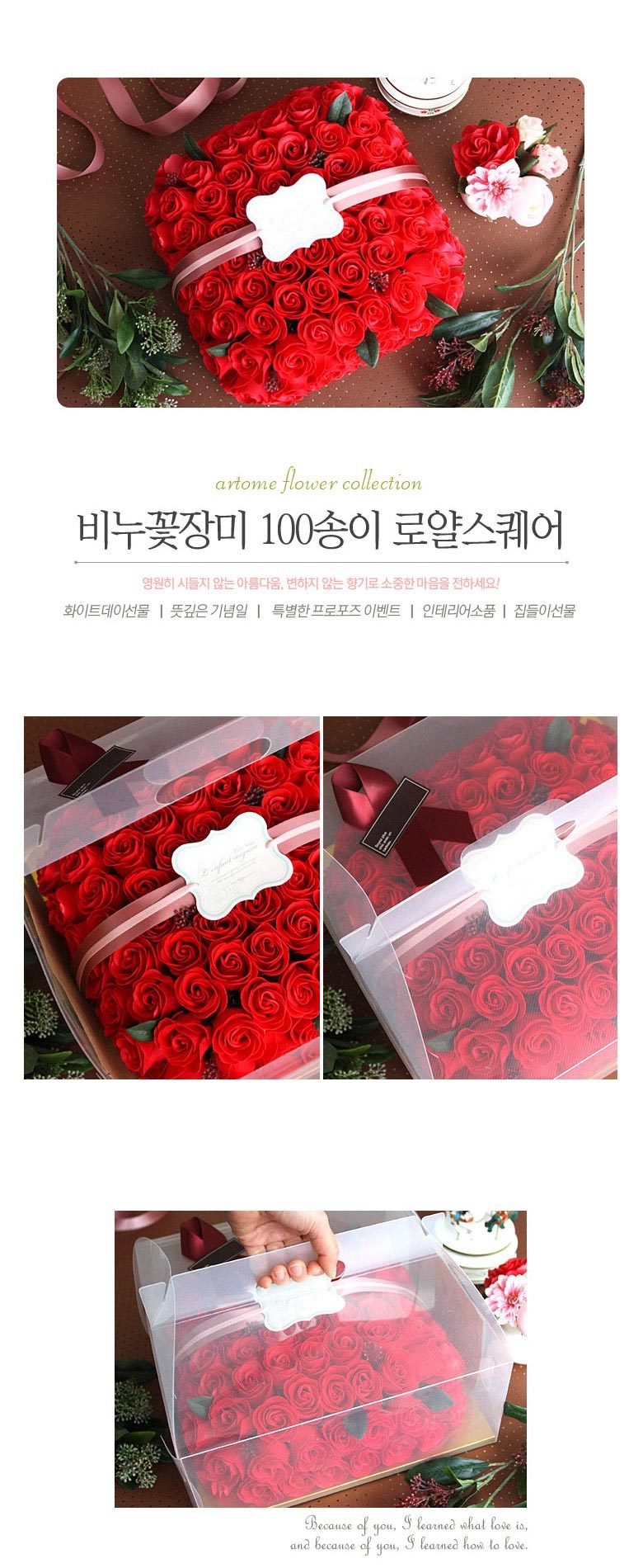 알톰 비누꽃장미 100송이 로얄스퀘어, 빨간장미, 1세트