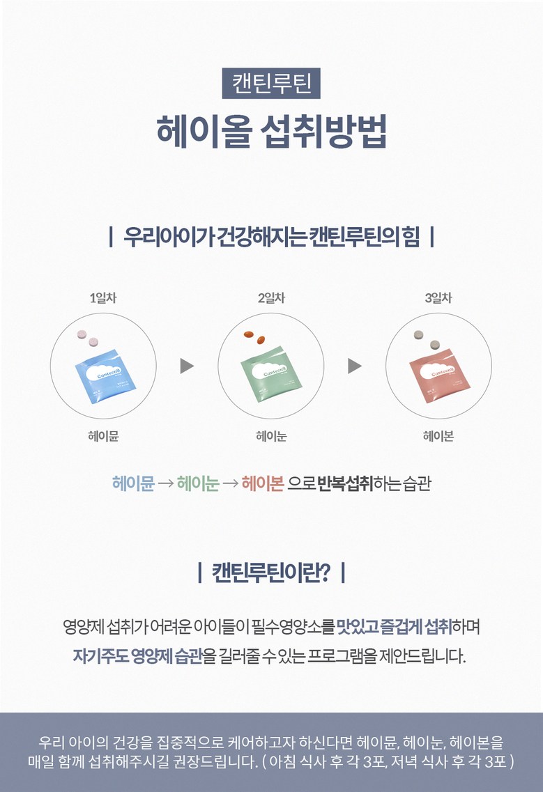 어린이 키즈 필수영양 올인원 3종패키지 면역건강 눈 뼈건강에 헤이올 (10월31일까지 3개월+1개월 6개월+2개월), 6개