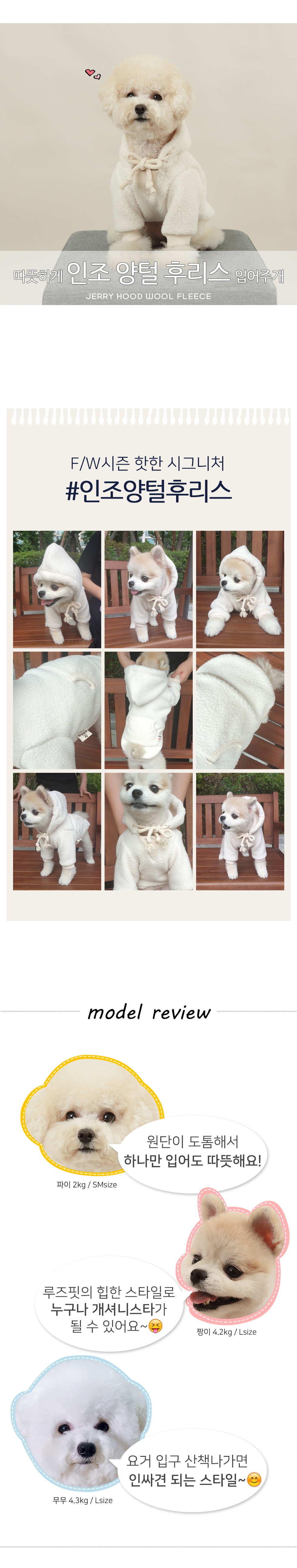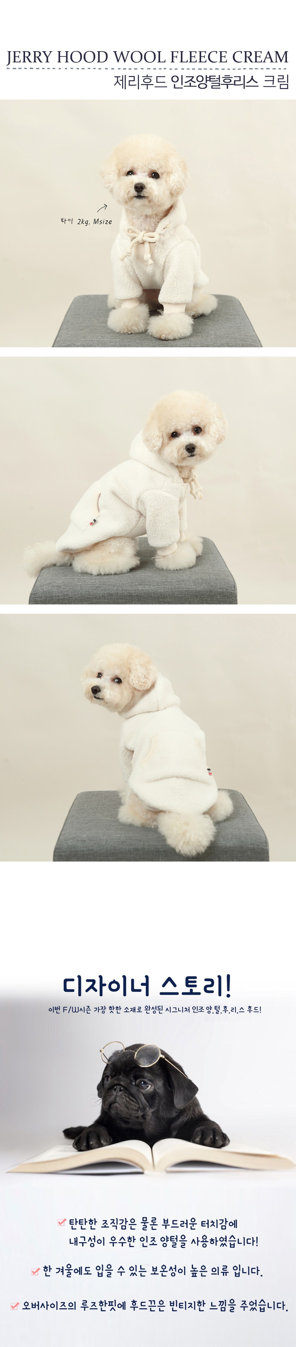 에이미러브즈펫 제리후드 인조양털 반려동물 후리스, 크림