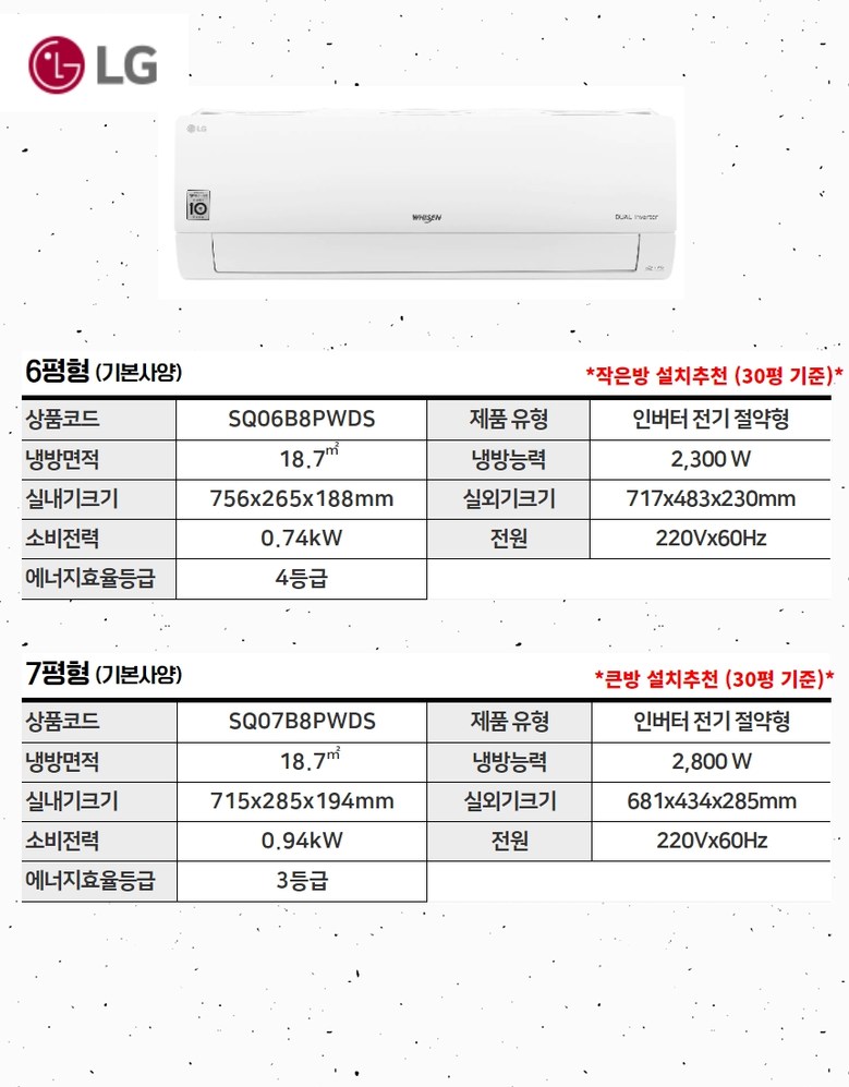 엘쥐 (21년신형) SQ06B8PWDS 인버터 냉전 6평형 벽걸이에어컨 [실외기포함+기본설치비별도+최저가 빠른설치], 화이트 (21년 신형), SQ06B8PWDS (6평형) 인버터냉전