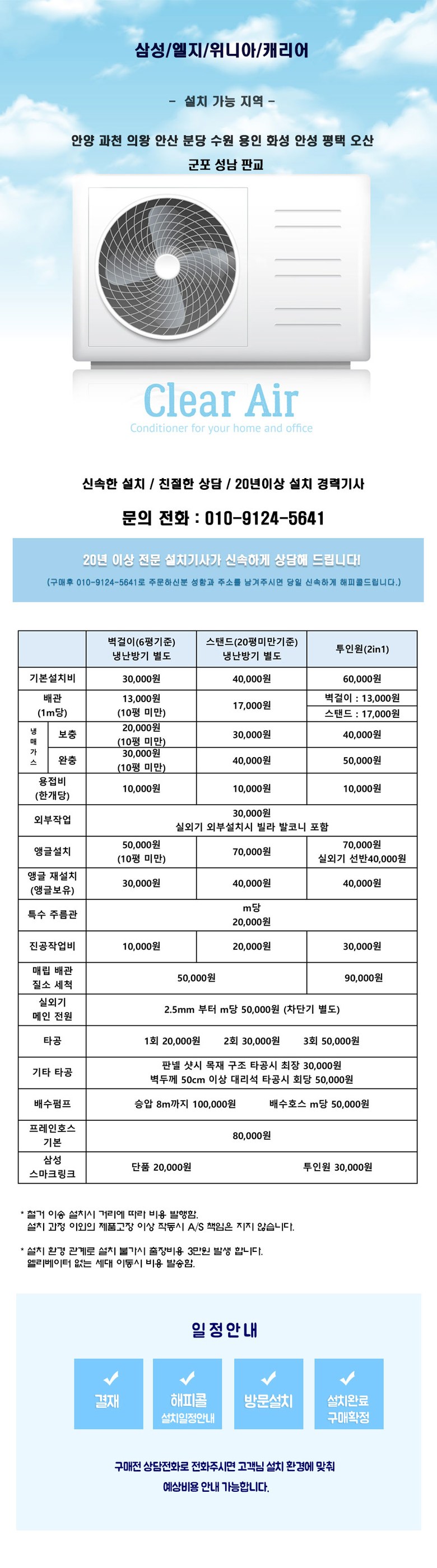 엘지 에어컨 이전 설치 (안양 과천 의왕 안산 분당 수원 용인 화성 안성 평택 오산 군포 성남 판교), 벽걸이(기본설치)