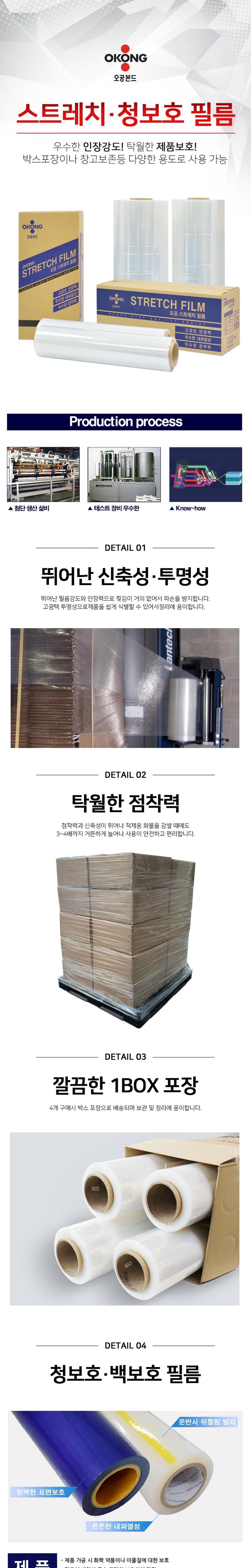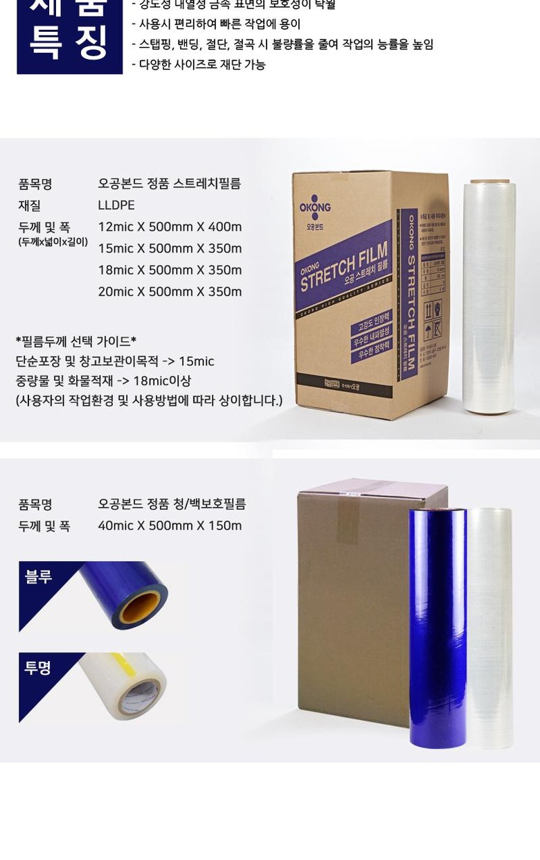 오공 공업용 스트레치 포장랩 청보호 백보호 필름, 오공 스트레치필름 12mic