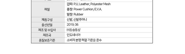 | 제품의 주소재(운동화인 경우에는 겉감,안감을 구분하여 표시) | 상품 상세페이지 참조 |