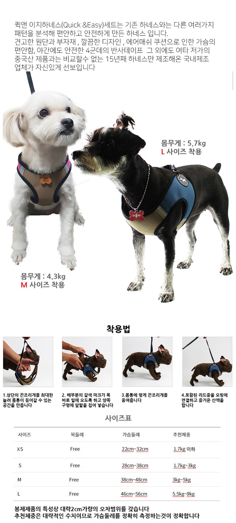 우프컴퍼니 퀵앤이지 하네스세트, 블루L, 1set