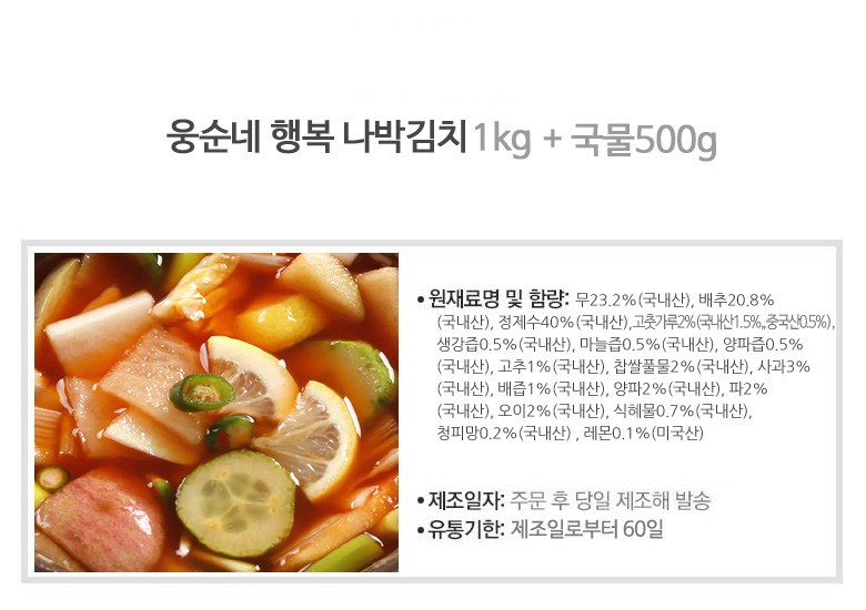 | 생산자 및 소재지 | 웅순네김치/서울 도봉구 |
