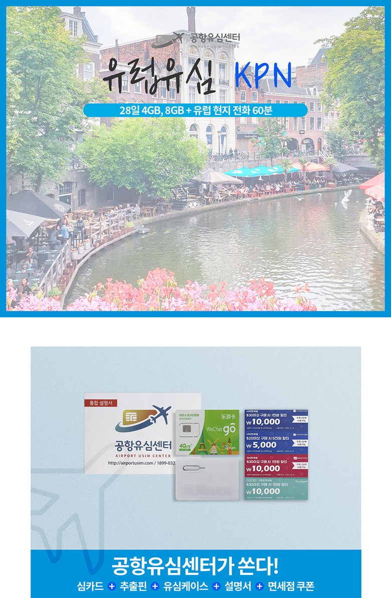 유럽유심 KPN 28일 4GB 8GB+통화60분 인천공항 수령무료, KPN.4GB 택배(+3000원), 1개